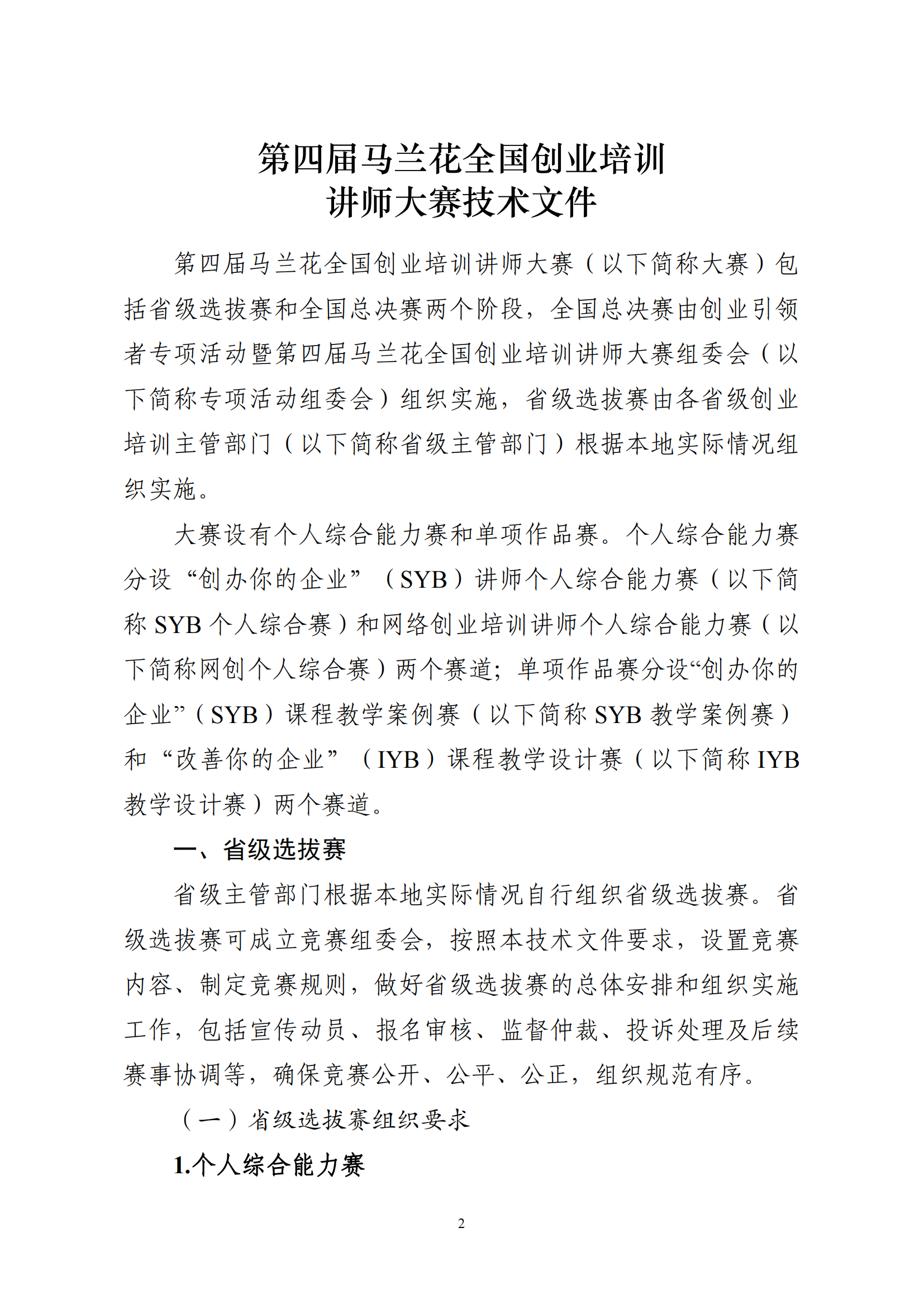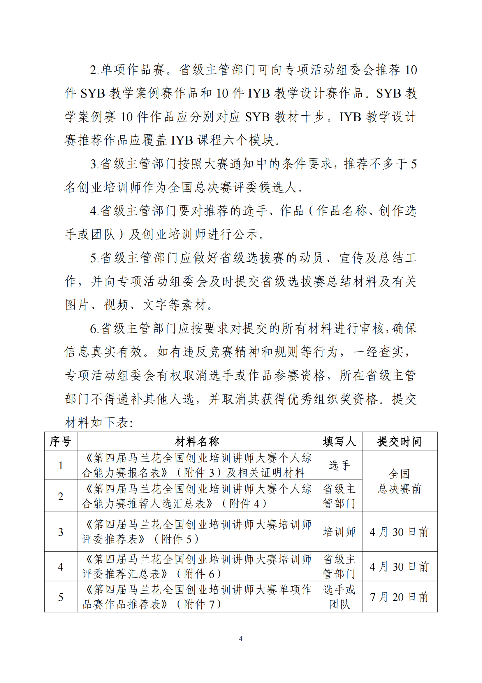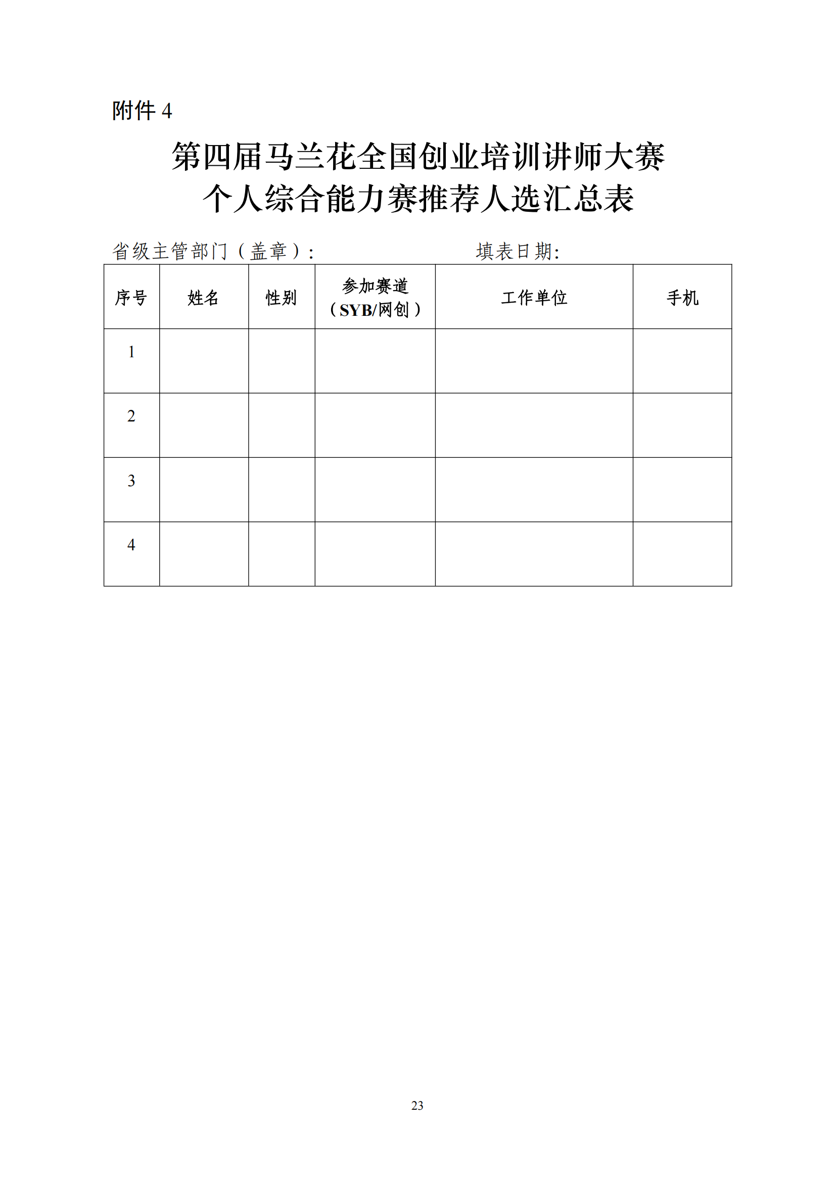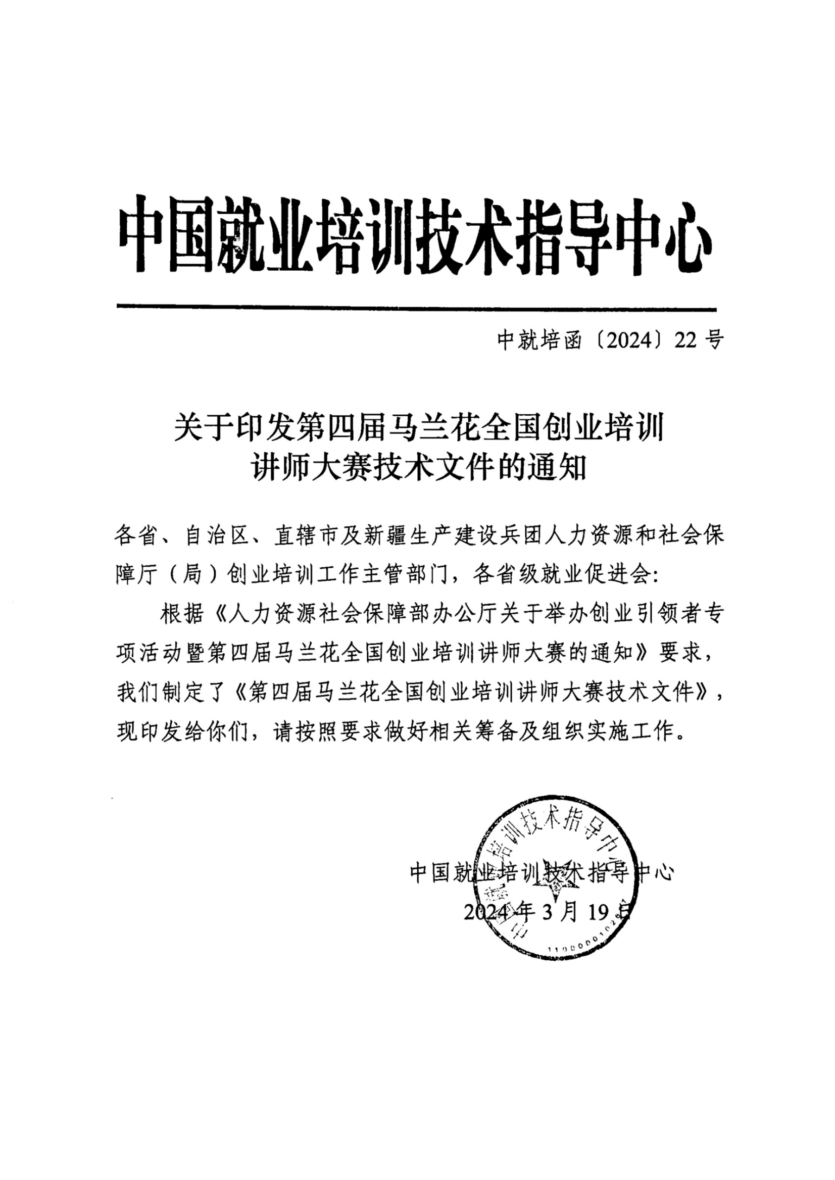 关于印发第四届马兰花全国创业培训讲师大赛技术文件的通知