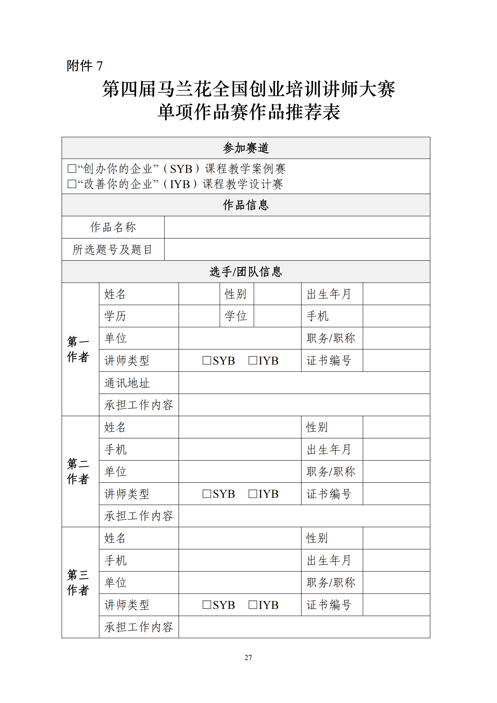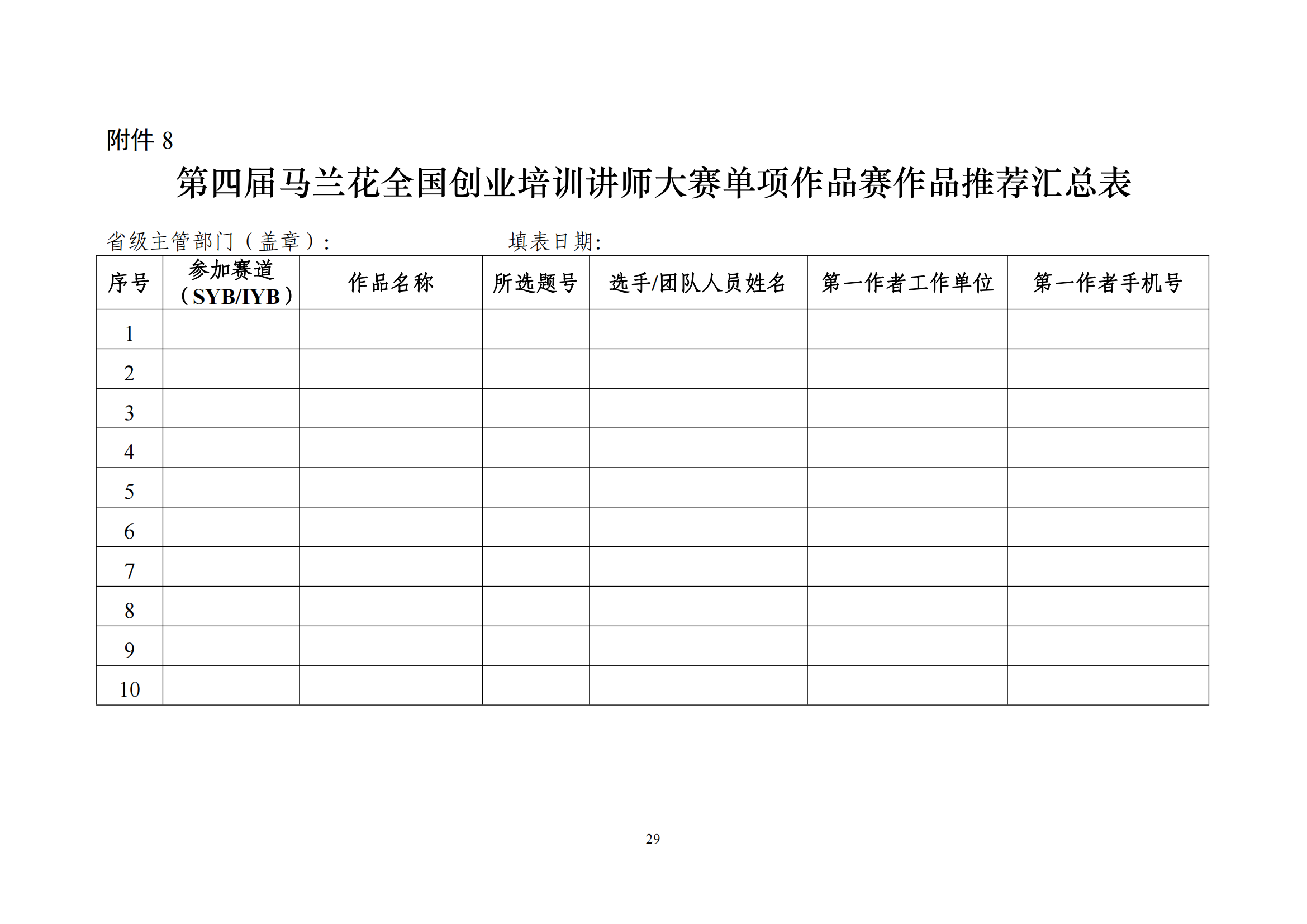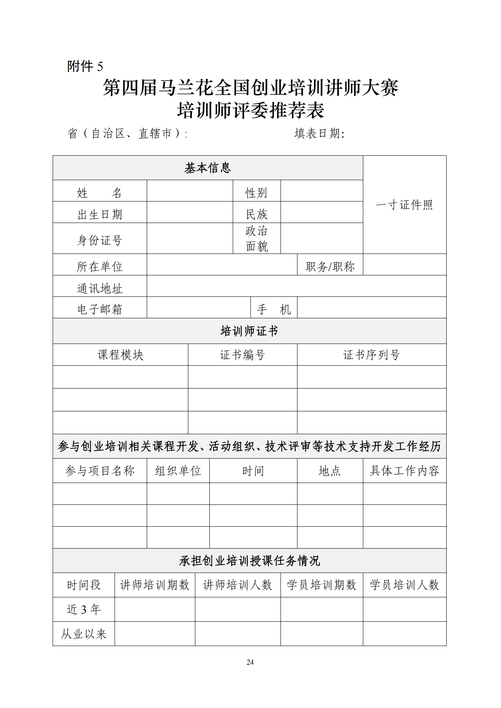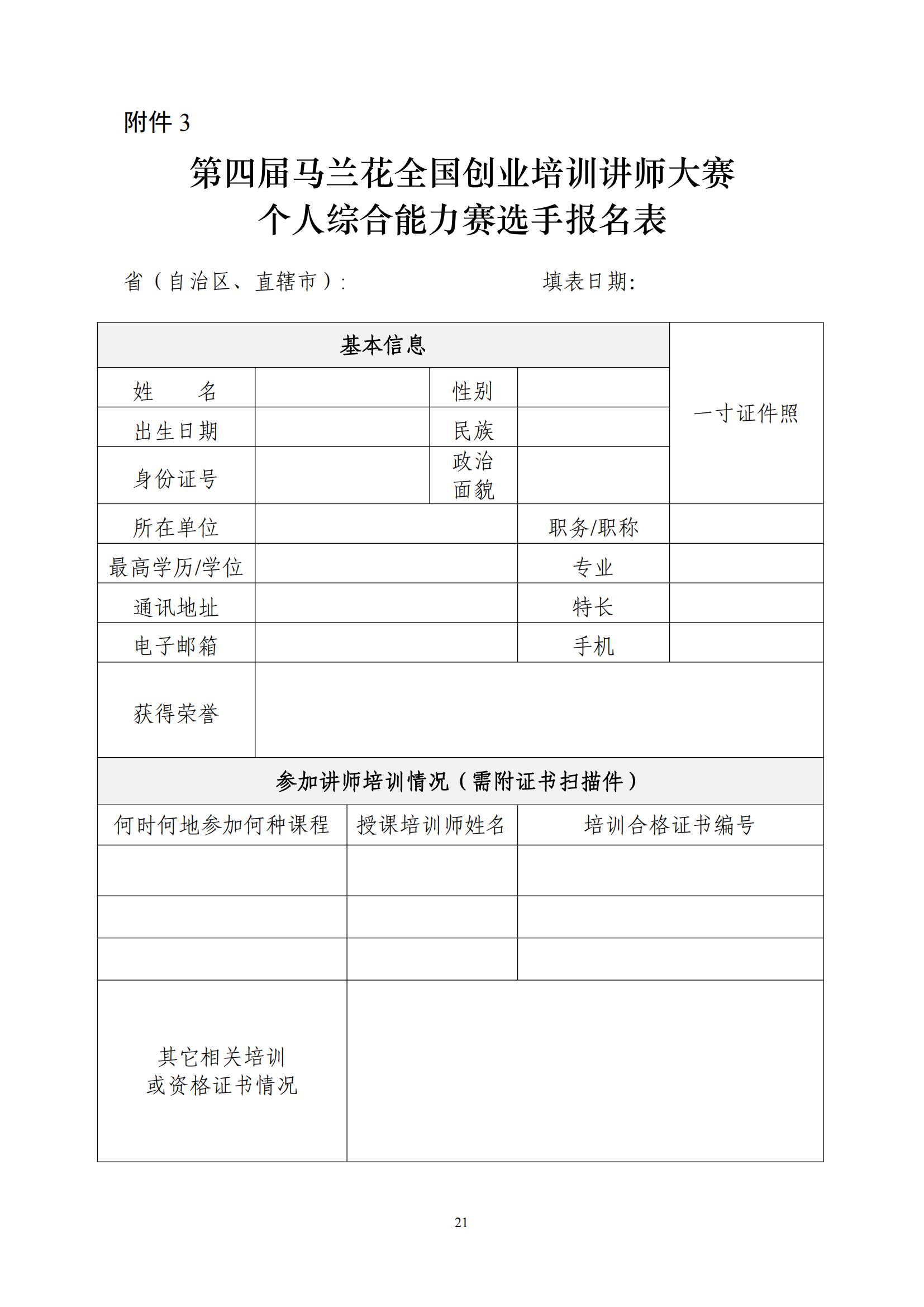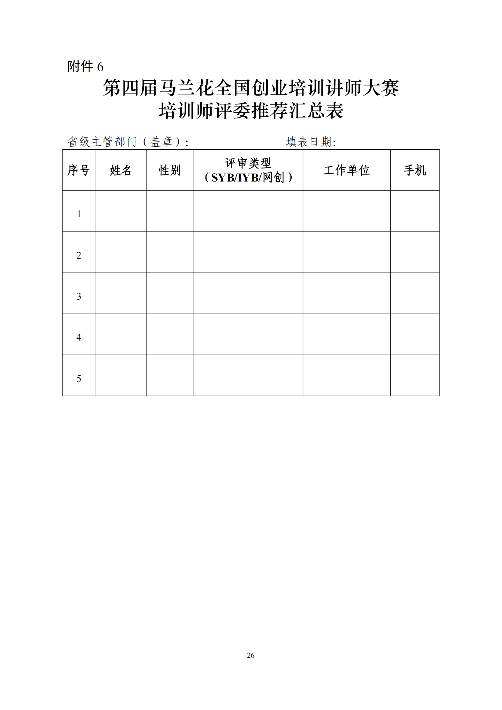 关于印发第四届马兰花全国创业培训讲师大赛技术文件的通知